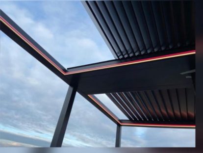 Les lames de nos pergolas bioclimatique s’orientent et se rétractent en fonction des conditions climatiques pour offrir un coin à l’ombre. Le fonctionnement de chaque lame orientable assure grâce à la rétractabilité une ventilation naturelle.